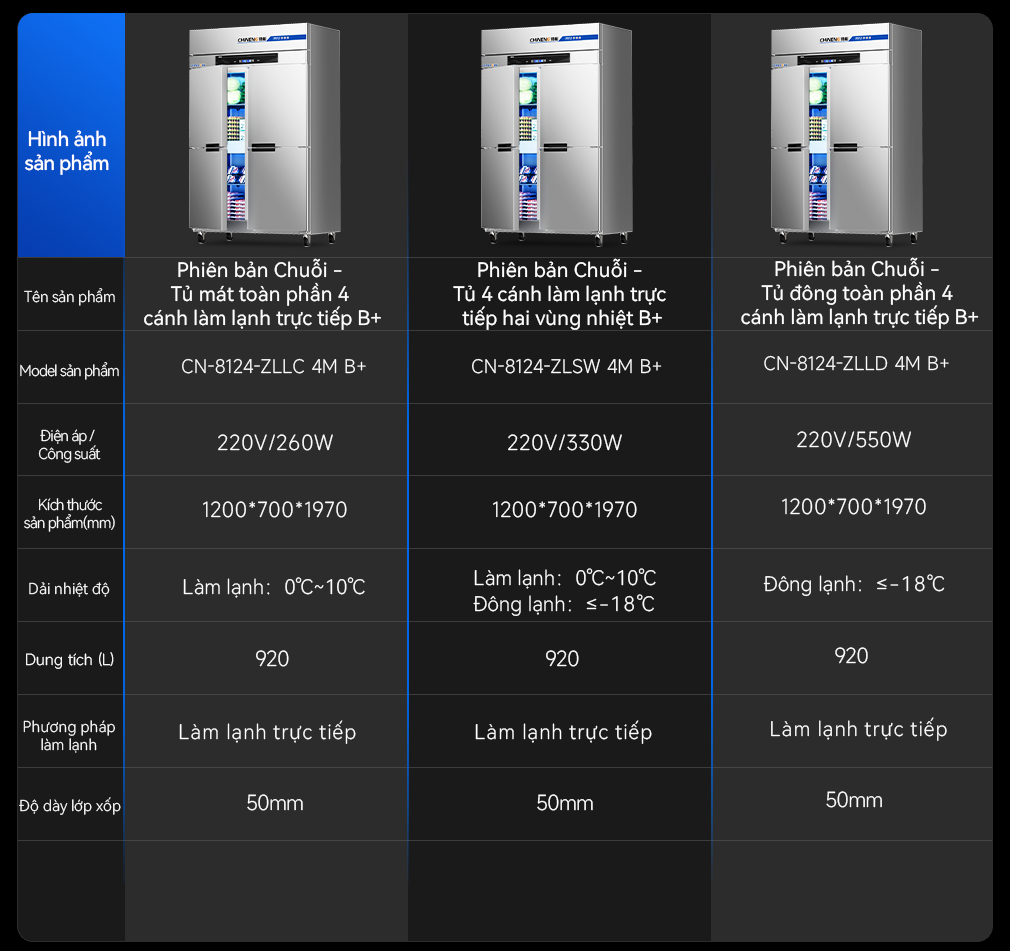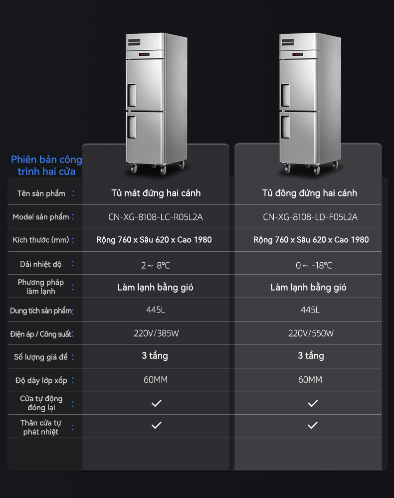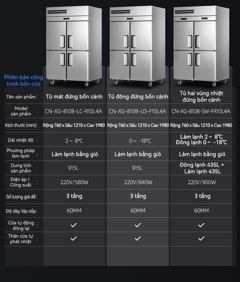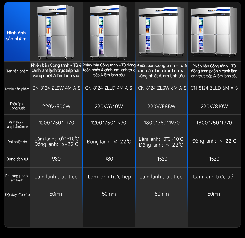 (Làm mát trực tiếp/làm mát bằng không khí) tủ đông đứng