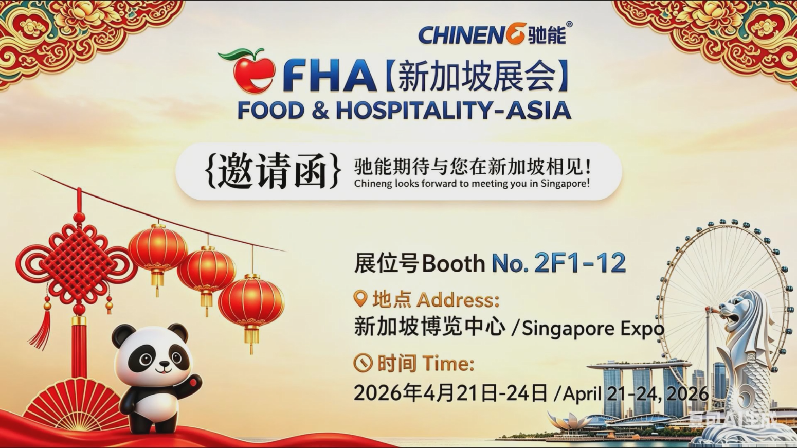 CHINENG xin trân trọng gửi lời mời đến các đối tác, nhà phân phối, chủ đầu tư nhà hàng và doanh nghiệp ngành thực phẩm đến tham quan gian hàng của chúng tôi tại triển lãm FHA Food & Hospitality Asia Singapore 2026.